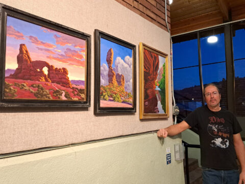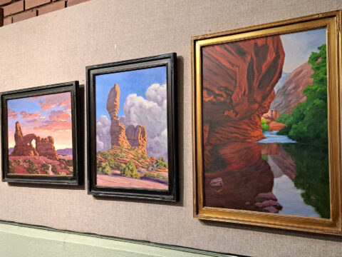 After that, the two you see on the right and left here will be displayed at the airport for 2026 starting the week of February 9th. The third in the center will be displayed at the Moab City Hall for all of 2026. Please visit @moabarts or https://www.moabarts.org/artwalk for more info & February 6th ArtWalk details.